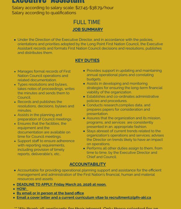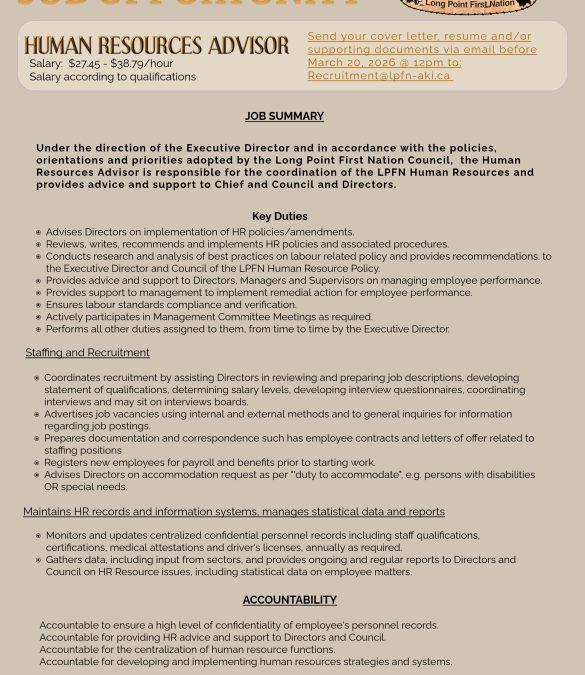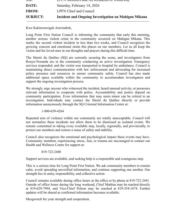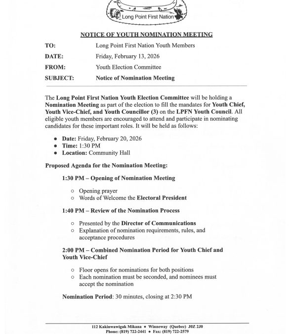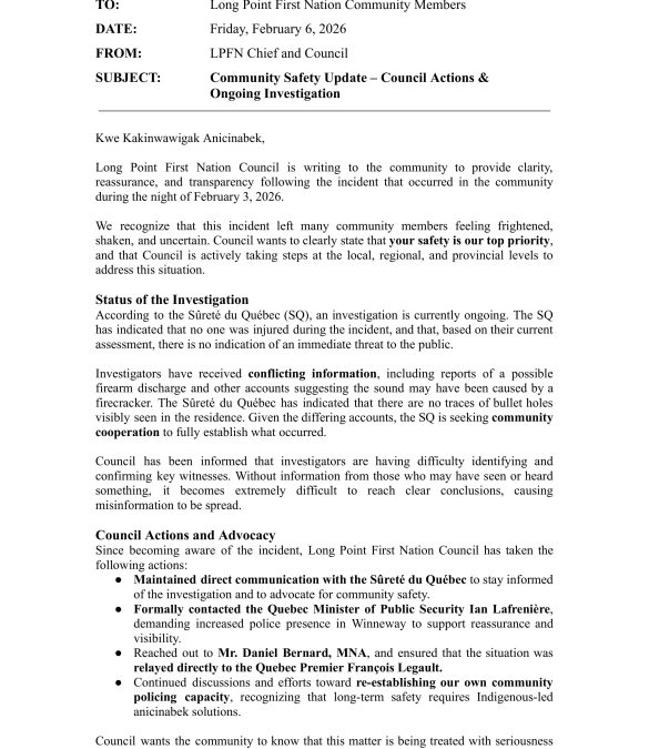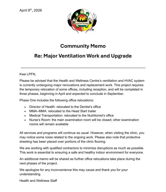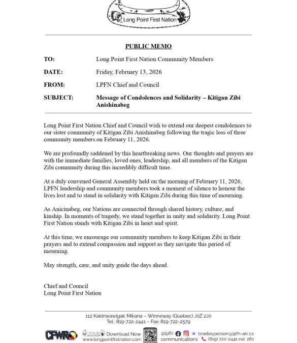 Long Point First Nation (LPFN) is a thriving community, dedicated to cultural preservation, community development, and providing quality services to its members.