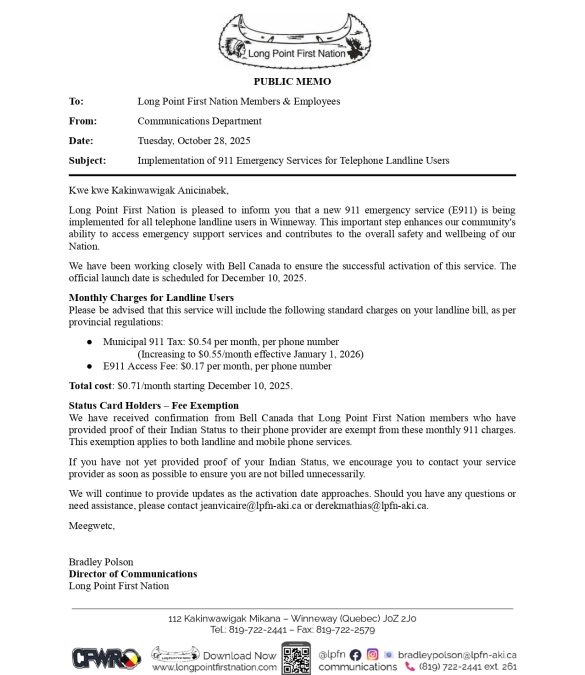 La Nation Anicinabe de Long Point (LPFN) est une communauté dynamique située en Abitibi-Témiscamingue, au Québec.