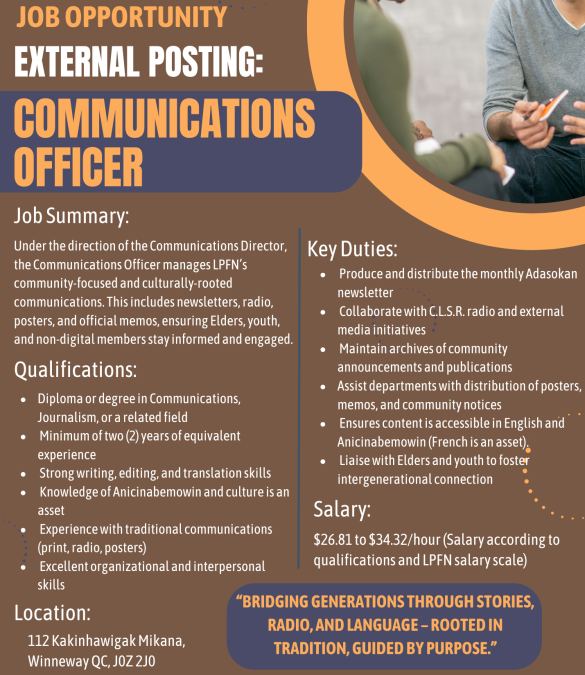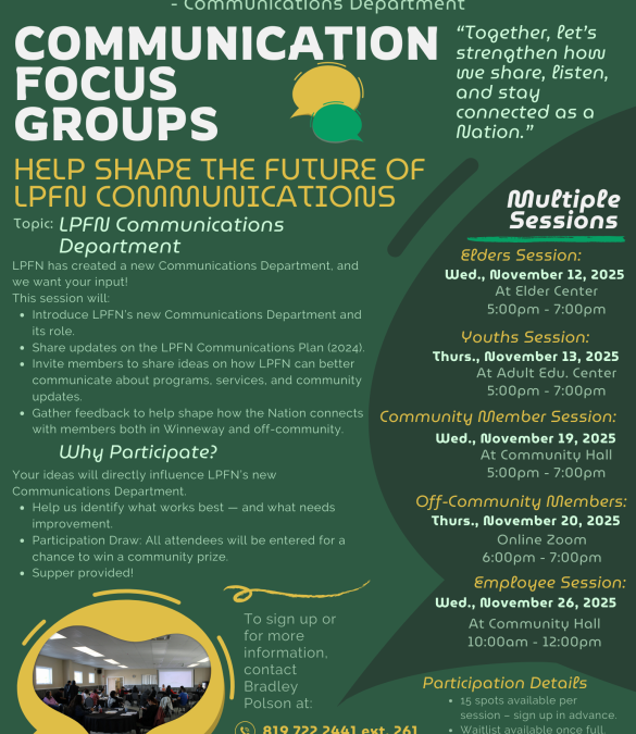 Forte d’un riche patrimoine culturel ancré dans les traditions anicinabe, LPFN s’engage à préserver son identité tout en favorisant le développement durable et le bien-être de la communauté. La communauté est guidée par les enseignements des Sept Grands-Pères – respect, amour, honnêteté,vérité, humilité, courage et sagesse – qui imprègnent tous les aspects de sa gouvernance et de sa vie quotidienne. LPFN participe activement à diverses initiatives visant à améliorer la qualité de vie de ses membres, notamment dans les domaines de l’éducation, de la santé, du logement et de la préservation culturelle.